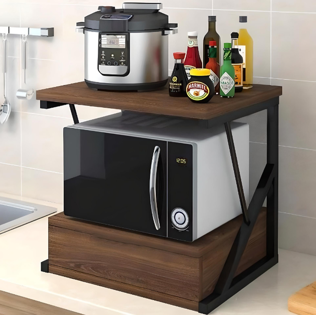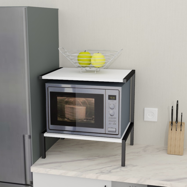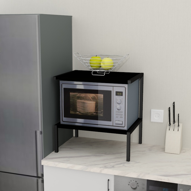 Полиця-органайзер для мікрохвильової печі, трирівнева полиця, кухонний стелаж для техніки, метал, до 25 кг, чорний