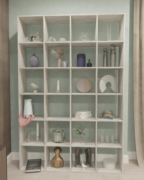 Стелаж для дому та офісу на 24 комірки з ДСП, полиці квадратні для книг L-24 Бетон