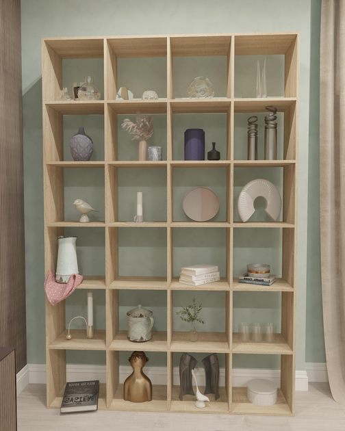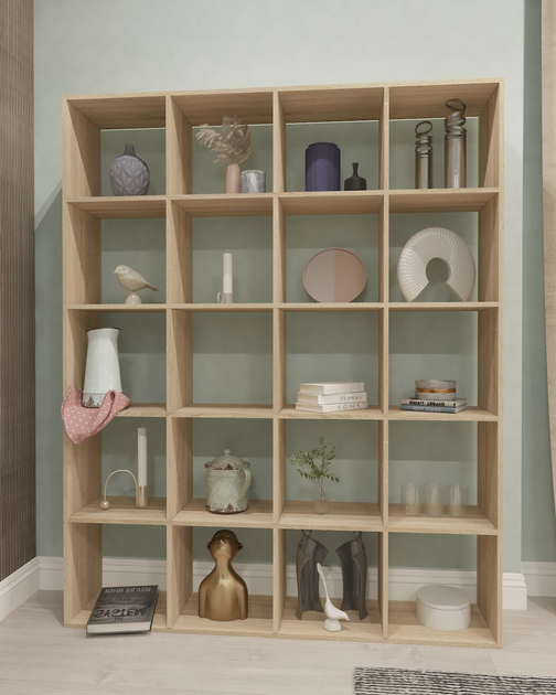 Стелаж для дому та офісу на 24 комірки з ДСП, полиці квадратні для книг L-24 Дуб Сонома