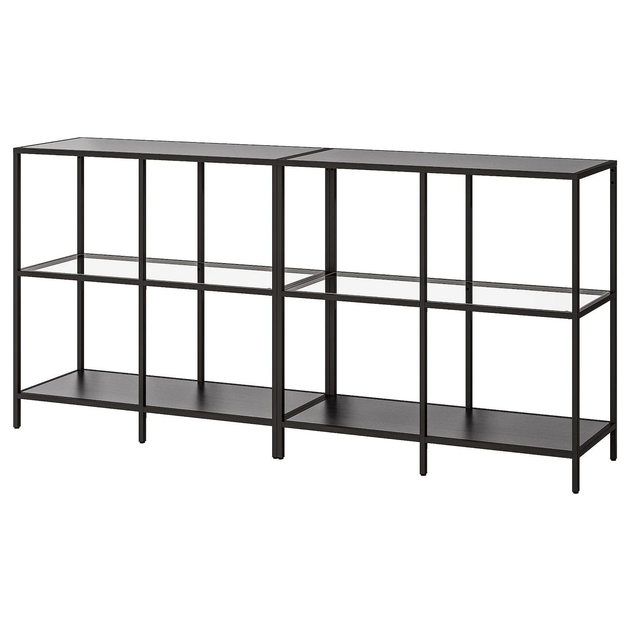 Стелаж IKEA VITTSJ ВІТТШЕ, чорно-коричневий, скло, 200х36х93 см, 092.945.26