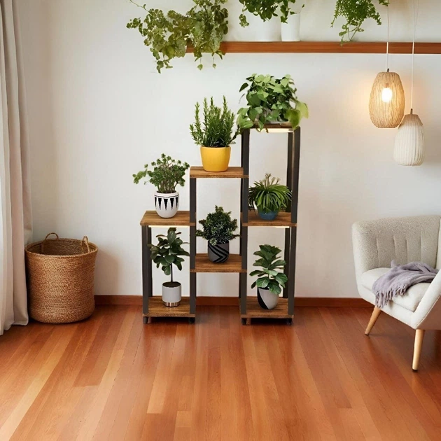 Стійка-полиця для квітів з дерева та металу, багатоярусна (CVT-8)