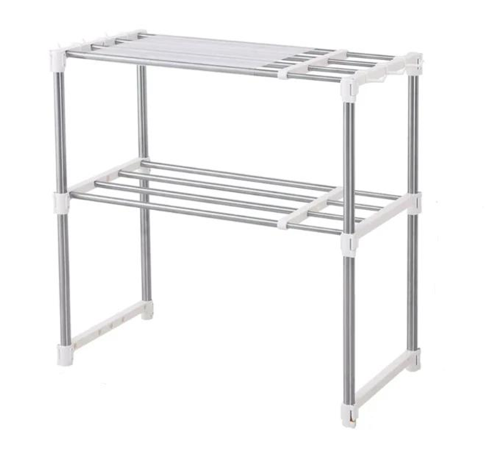 Розсувна полиця для мікрохвильовки 8018 з металевим каркасом на 2 яруси Срібляста (127-14-16587)
