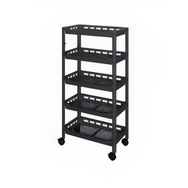 Стелаж-полиця пластикова пересувна на колесах на 5 ярусів універсальна Чорний (JDT-0847057)