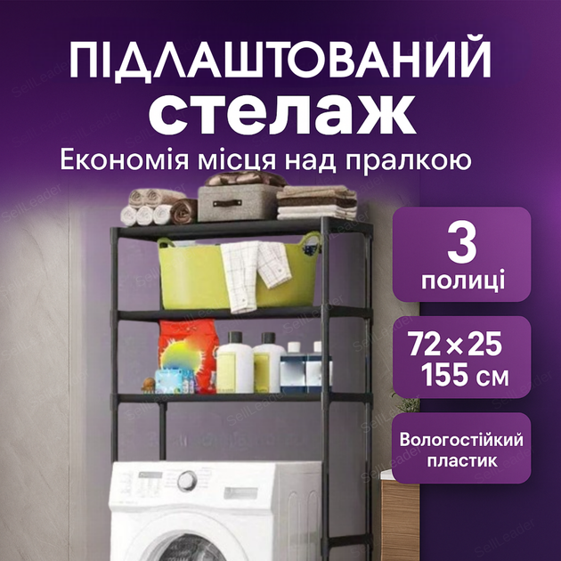 Етажерка пластикова для ванної над пральною машинкою стелаж 3 яруси вологостійкий 7225155см на ніжках