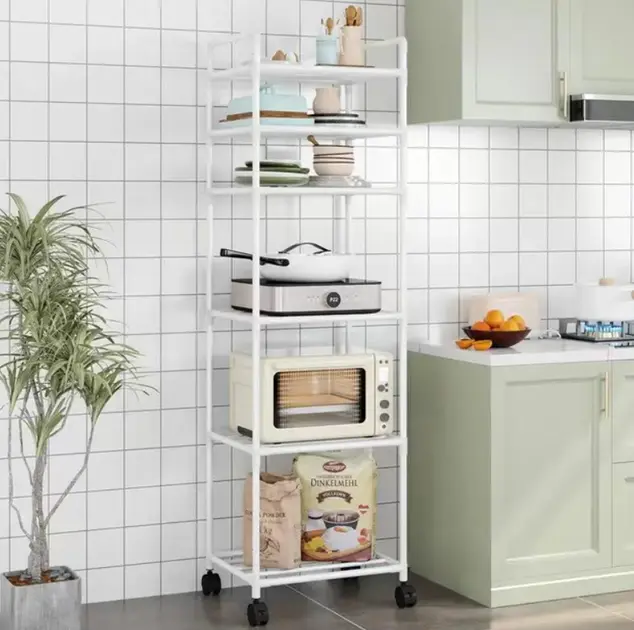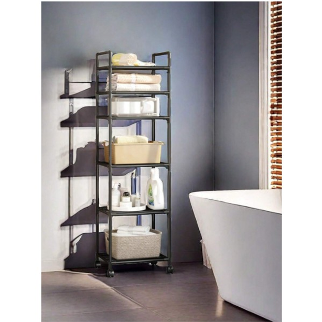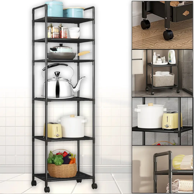 6-рівневий підлоговий стелаж для зберігання з роликами, візок для кухні, ванної кімнати
