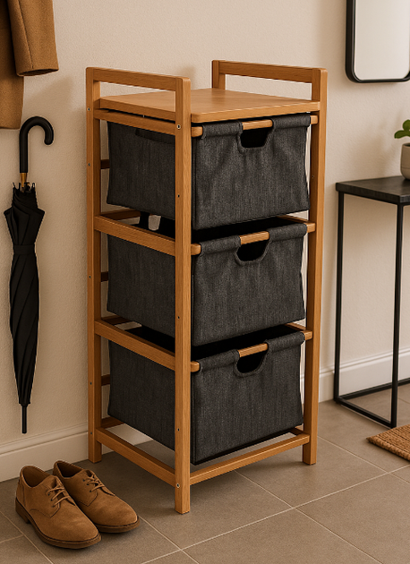 Етажерка підлогова з 3 ящиками 343291 см дерев'яна з тканинними кошиками для зберігання речей