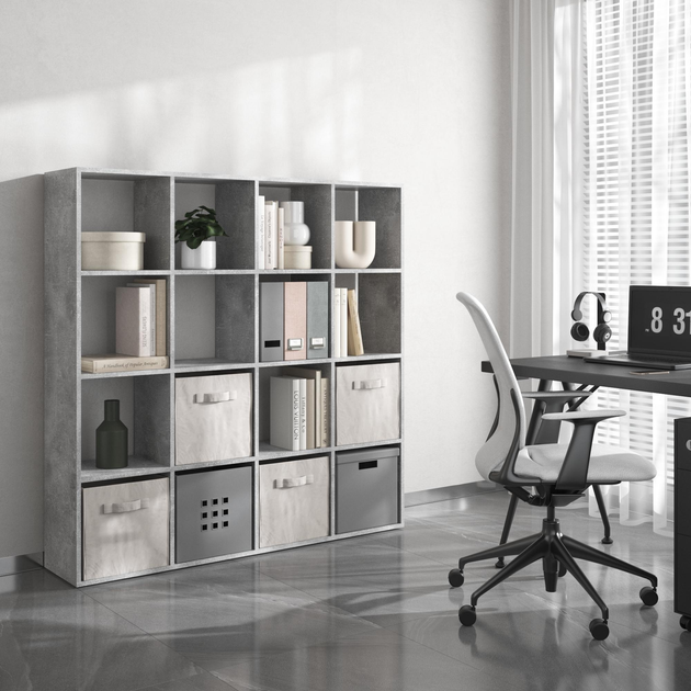 Стелаж полиця роздільник кімнати на 16 комірок для книг іграшок сувенірів 1424х1430х290 мм Бетон