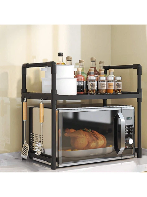 Кухонна полиця органайзер під мікрохвильову піч з гачками етажерка настільна для побутової техніки