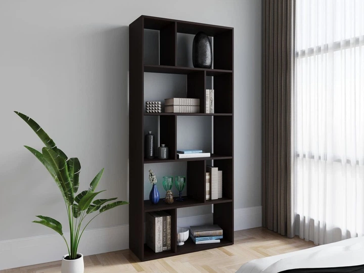 Стелаж-перегородка DrevoGoods вузький, посилений, підлоговий / пристінний для дому та офісу на 6 полиць, 10 комірок для збер