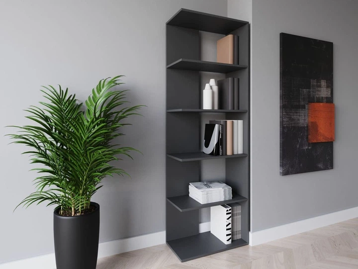 Стелаж-перегородка DrevoGoods вузький, посилений, підлоговий / пристінний для дому та офісу на 5 полиць для зберігання книг