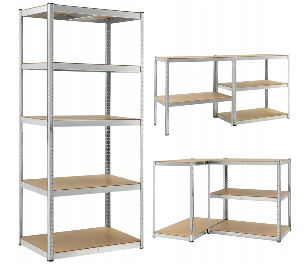 Набір стелажів LEOBRO - це ідеальне рішення для організації простору в підвалі, гаражі, на складі, магазині, офісі або домашньому архіві. У комплект входять п'ять стелажів, кожний розміром 180 x 90 x 40 см, які можна використовувати як окремо, так і поєднати в одну велику систему зберігання. Кожен стелаж складається з 5 міцних полиць із товстої плити МДФ, що витримують навантаження до 175 кг