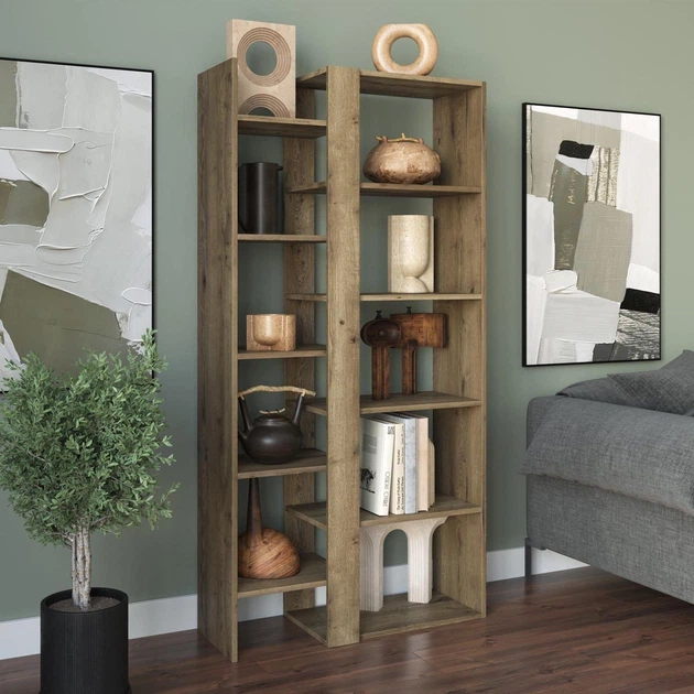 Стелаж-перегородка / книжкова полиця від виробника DrevoGoods дерев'яний з ламінованого ДСП для дому та офісу на 9 комірок 1