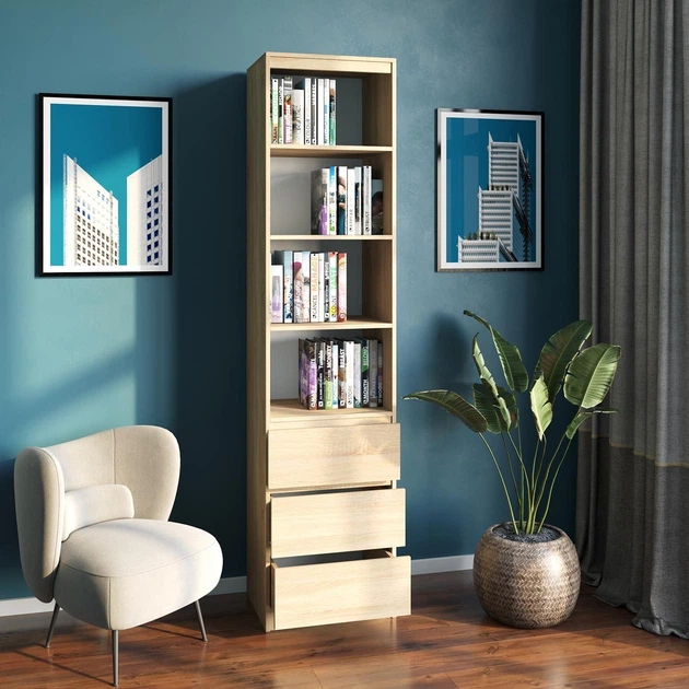 Стелаж / книжкова полиця від виробника DrevoGoods дерев'яний з ламінованого ДСП для дому та офісу на 4 комірки 500х400х2110м