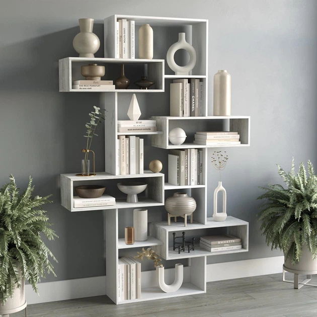 Стелаж-перегородка / книжкова полиця від виробника DrevoGoods дерев'яний з ламінованого ДСП для дому та офісу на 16 комірок