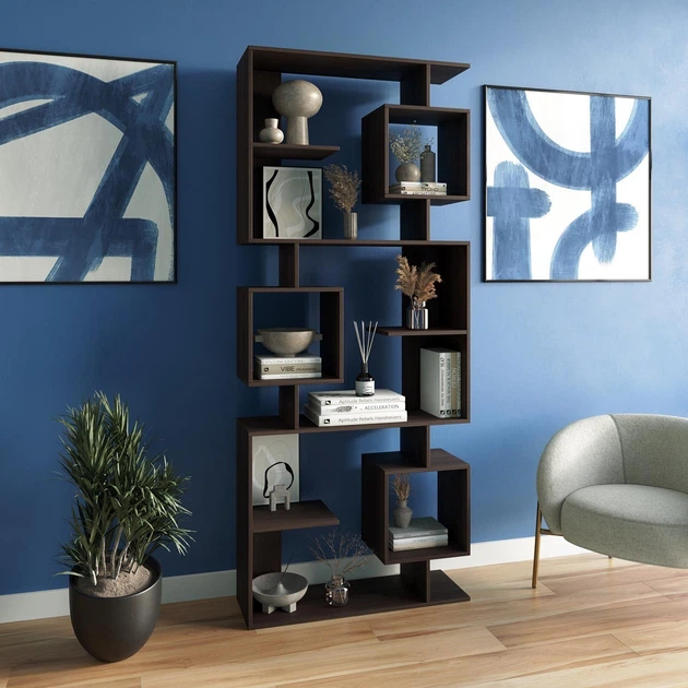 Стелаж-перегородка / книжкова полиця від виробника DrevoGoods дерев'яний з ламінованого ДСП для дому та офісу на 16 комірок