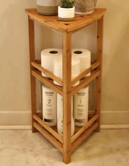 Стелаж кутовий для ванної з дерева Естафета охра (ВУГ-002004)