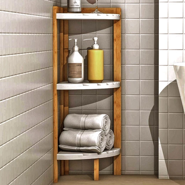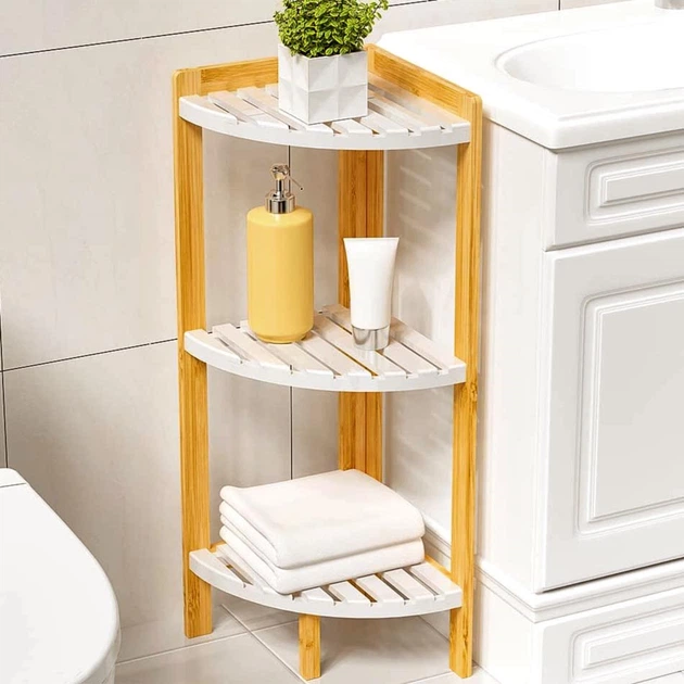 Стелаж кутовий для ванної з дерева Ескорпіо бланже (ВУГ-003001)