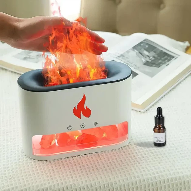 Зволожувач повітря білий сольова лампа 3в1 нічник led лампа аромадифузор для дому з ефектом полум'я електрокамін ароматизато
