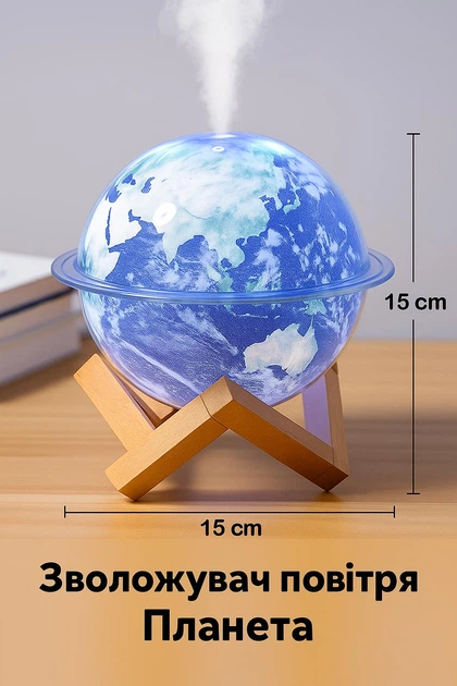 Зволожувач повітря у формі планети з підсвічуванням для дому та офісу 15х15