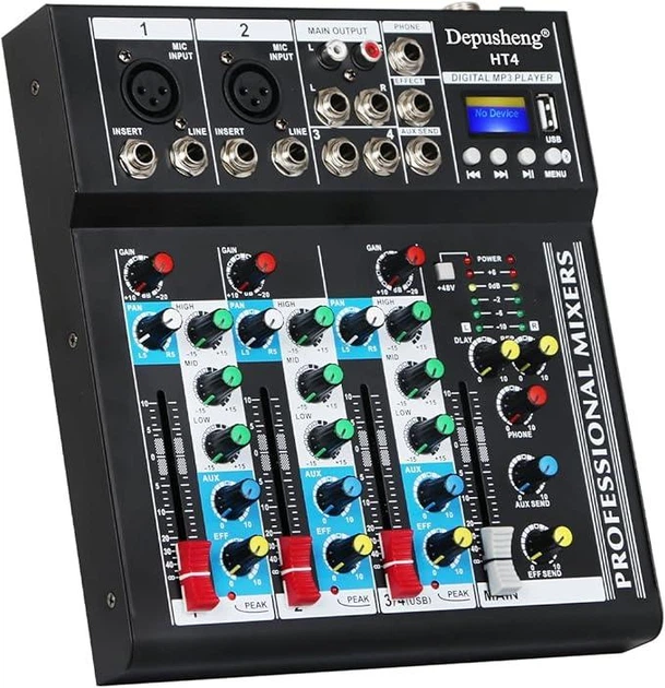 Мікшерний пульт Depusheng 4-канальний — USB аудіоінтерфейс, для студії, DJ, подкастів, стримів