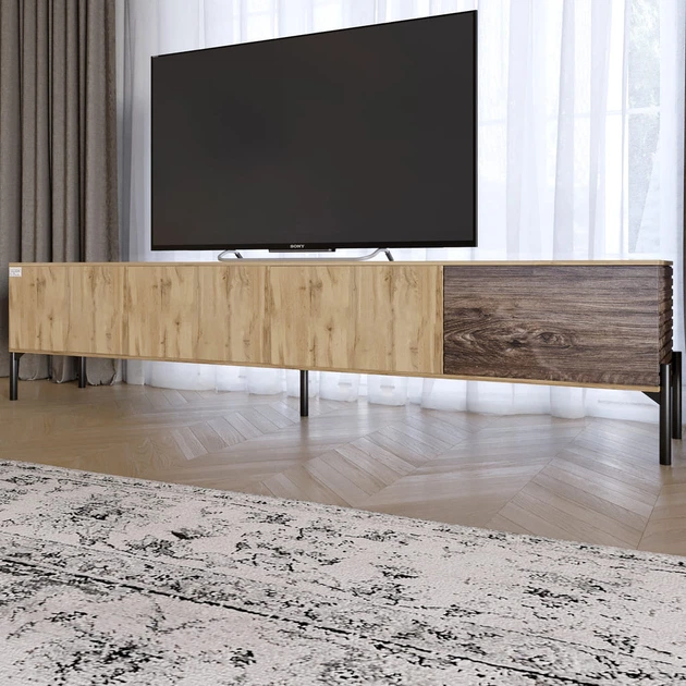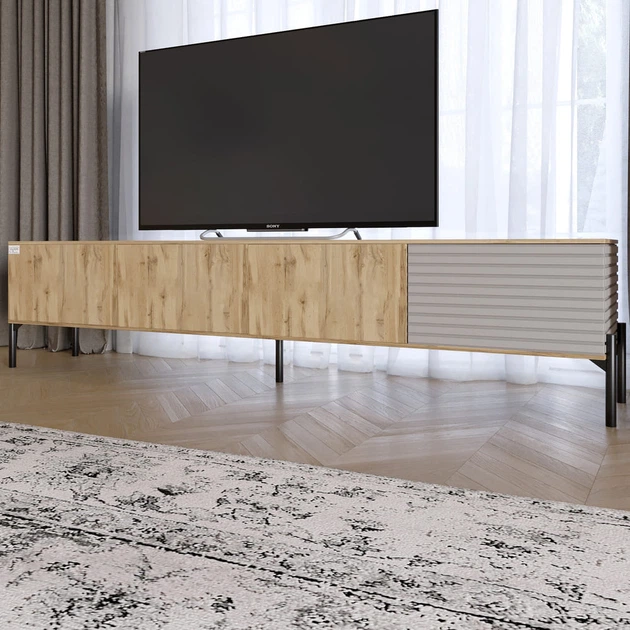 Тумба під телевізор на чорних металевих ніжках LION Грей Дуб Аппалачі/Камінь (LION-042550)