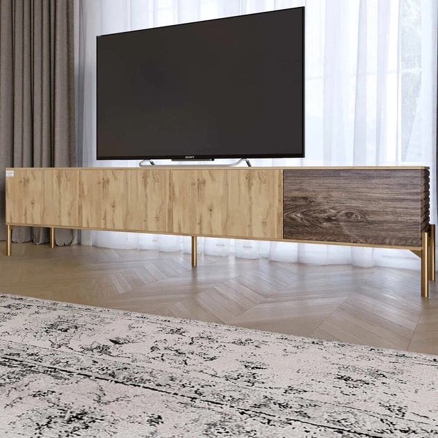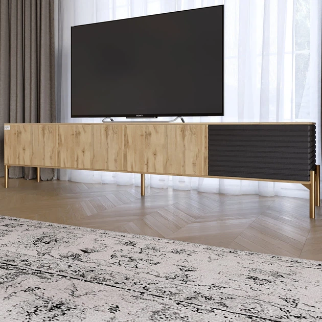 Тумба під телевізор на золотих металевих ніжках LION Грей Дуб Сонома/Асфальт (LION-042478)