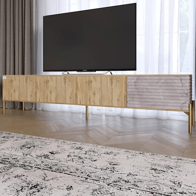Тумба під телевізор на золотих металевих ніжках LION Грей Дуб Аппалачі/Камінь (LION-042566)
