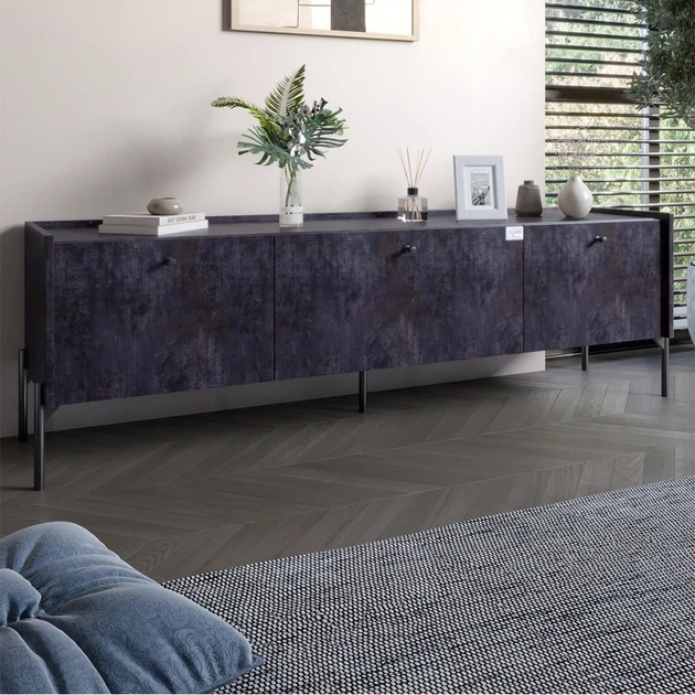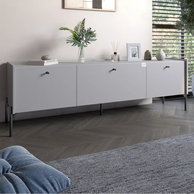 Тумба під телевізор на 3 шухляди LION Wood з чорними ніжками 180x50x40 см Антрацит (LION-043092)