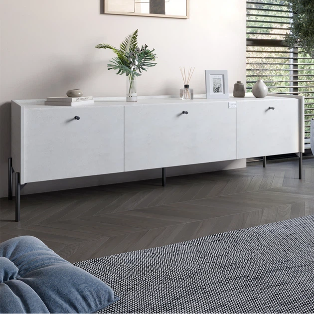 Тумба під телевізор на 3 шухляди LION Wood з чорними ніжками 160х65х40 см Бетон style (LION-043094)