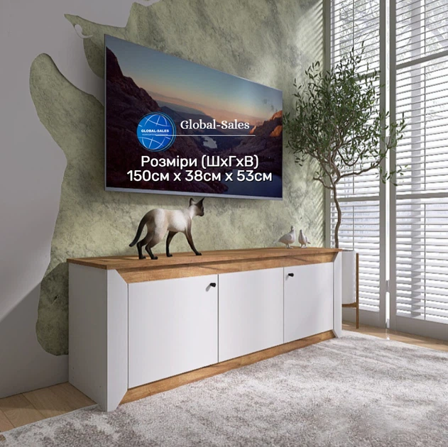 Тумба ТВ 1500 Нордік, Дуб Крафт Золотий, Білий
