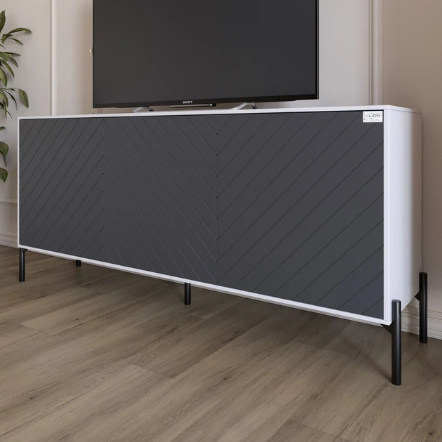 Тумба під телевізор із чорними металевими ніжками LION Амарант 168x40x76,5 см Німфея Альба (білий)/Графітовий (LION-043017)