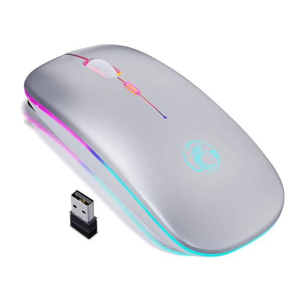 Бездротова ігрова мишка iMICE з LED-підсвічуванням та акумулятором – для ПК та ноутбука Срібна (5309-30-S)