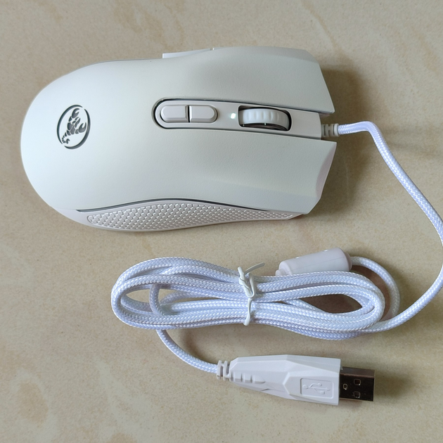 Ігрова оптична миша з підсвічуванням та симетричним дизайном, біла
