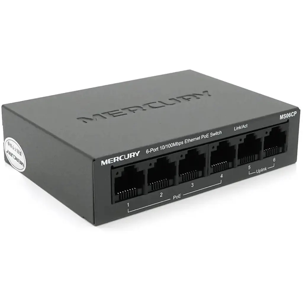 Комутатор POE Mercury MS06CP з 4 портами POE+ 2 порти UP-Link 100Мбіт, БП в комплекті, Q20