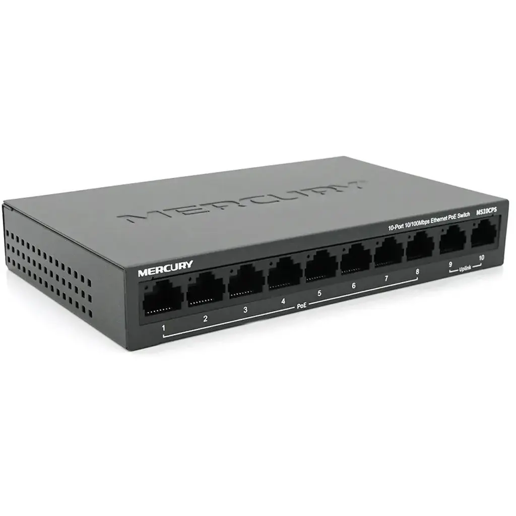 Комутатор POE Mercury MS10CPS з 8 портами POE + 2 порти UP-Link 100Мбіт, БП у комплекті, Q18