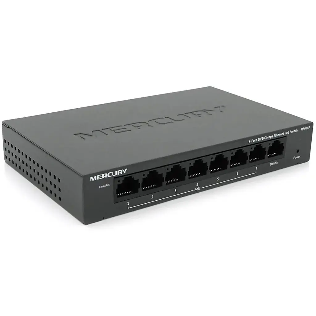 Комутатор POE Mercury MS08CP з 7 портами POE + 1 порт UP-Link 100Мбіт, БП в комплекті, Q18