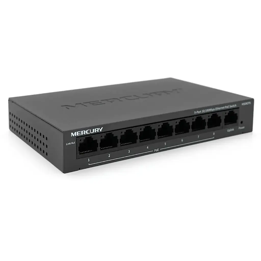 Комутатор POE Mercury MS09CPS з 8 портами POE + 1 порт UP-Link 100Мбіт, БП в комплекті, Q18