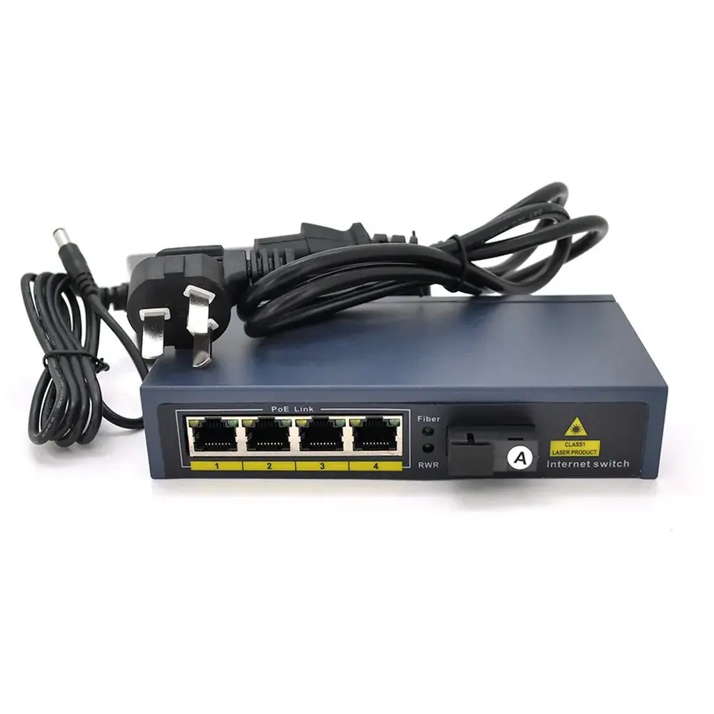Комутатор POE 48V/57V 4 портів PoE +1 порт Ethernet FX 155 Мбіт/с (UP-Link) A, 802.3af, Black, БП у комплекті, (238*190*96)