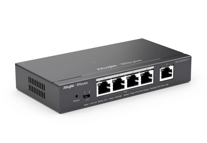 Розумний керований комутатор Ruijie Reyee 5 портів 1 Гбіт/с для відеоспостереження чорний