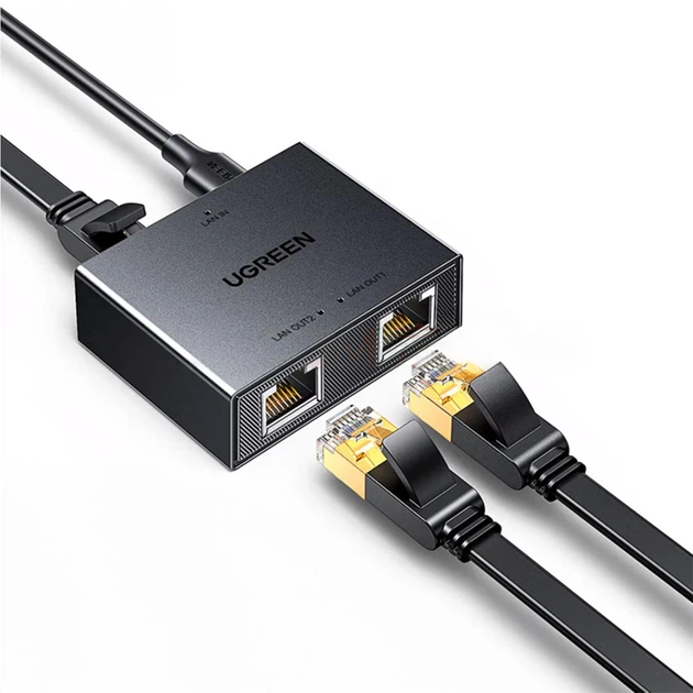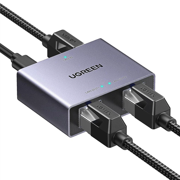Мережевий розгалужувач Ugreen NW301 Gigabit Ethernet RJ45 1 на 2 1000 Мбіт/с USB-C Aluminum Сірий (35598)
