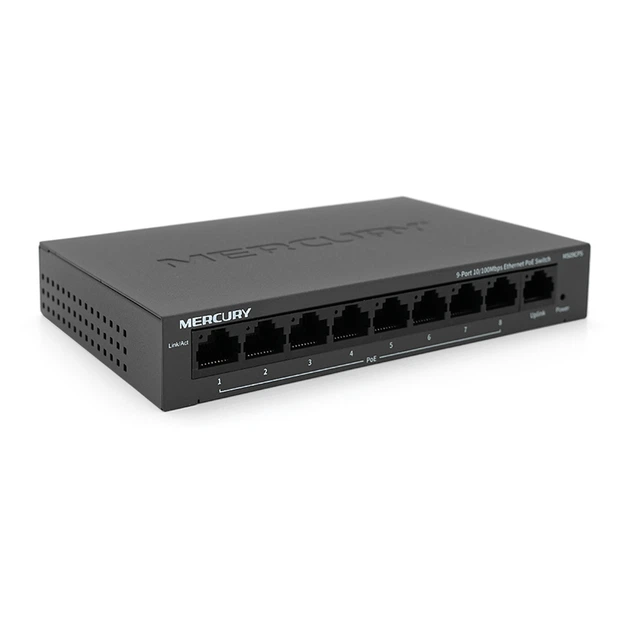 Комутатор POE Mercury MS09CPS з 8 портами POE + 1 порт UP-Link 100Мбіт, БП у комплекті, Q18