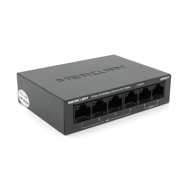 Комутатор POE Mercury MS06CP з 4 портами POE+ 2 порти UP-Link 100Мбіт, БП в комплекті