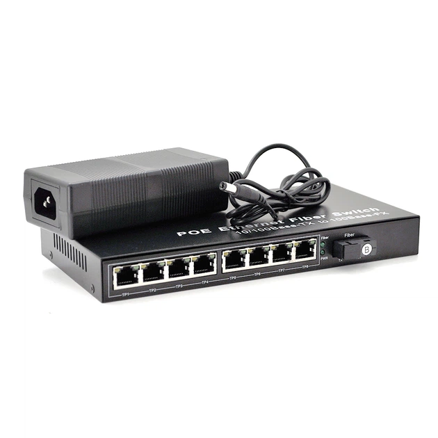 Комутатор POE із вбудованим SFP (B) 48V-57V, 8 портів PoE + 1 порт Ethernet FX 155 Мбіт/с (UP-Link) 1550nm, 802.3af, Black,
