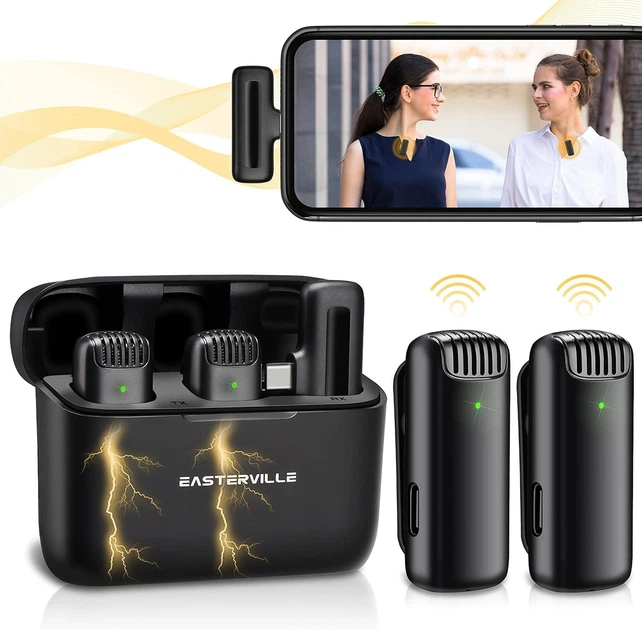 Бездротовий петличний мікрофон Easterville (2 шт.) для Type-C Android — мікрофони для відеозйомки, прямих ефірів, конференці