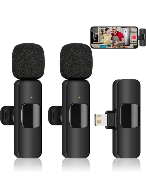 Бездротовий подвійний мікрофон петличний для телефону Iphone (Lightning), не вимагає ручного налаштування, Чорний