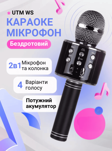 Бездротовий мікрофон для караоке з Bluetooth колонкою та зміною голосу UTM WS858 Динамічний Black (WS858LRT)