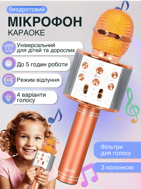 Bluetooth мікрофон для караоке зі зміною голосу WS-1818 золотий колір