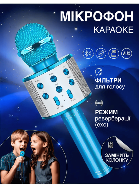 Бездротовий мікрофон для караоке з Bluetooth колонкою та зміною голосу UTM WS858 Динамічний Blue (WS858LRT)