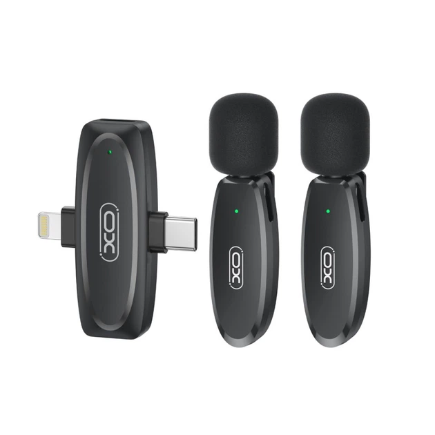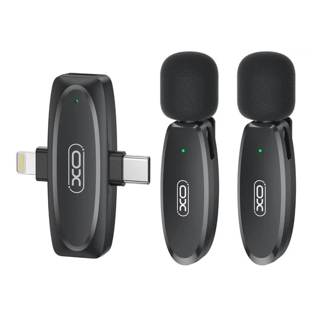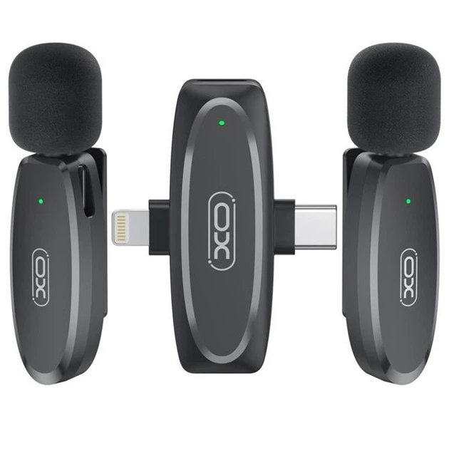 Петличний бездротовий мікрофон XO MKF010 Twin 2 мікрофони із загальним ресівером, з роз'ємами Type-C/Lightning для підключен