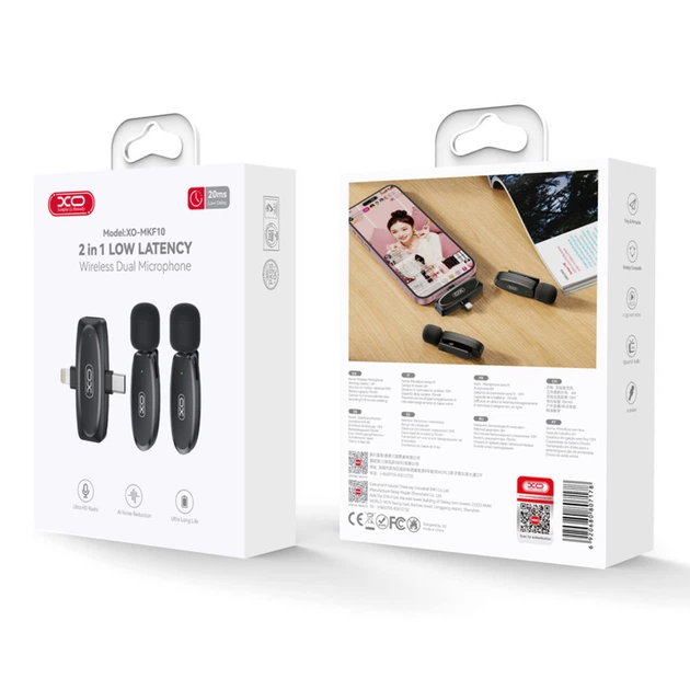 Мікрофон петличний бездротовий XO MKF010 Twin Type-C / Lightning 70mAh, Black